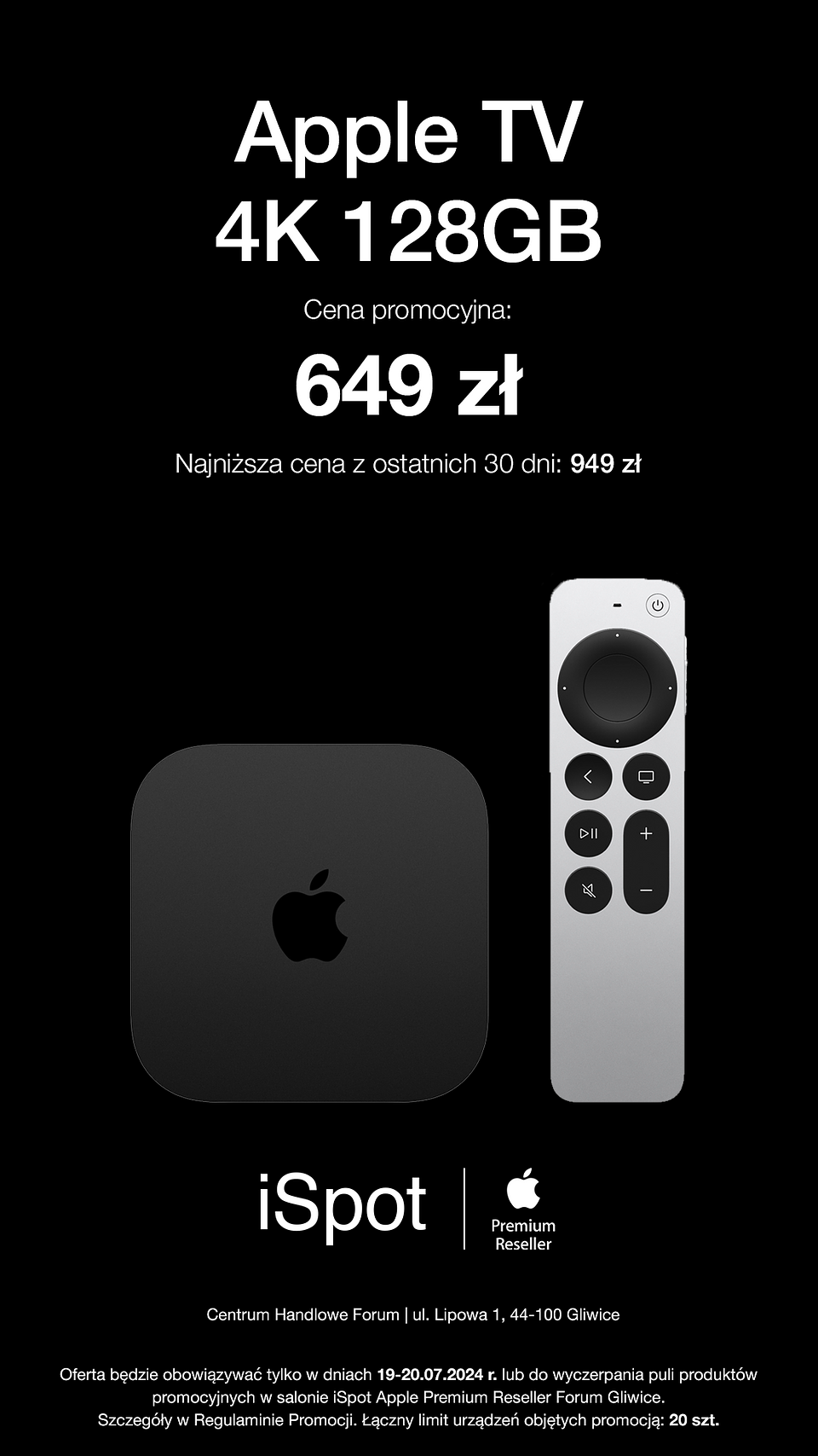 Promocje dla fanów Apple z Gliwic Klientów, którzy odwiedzą iSpot Apple Premium Partner w galerii Forum Gliwice w dniach 19-20 lipca, mogą skorzystać z limitowanych promocji*: