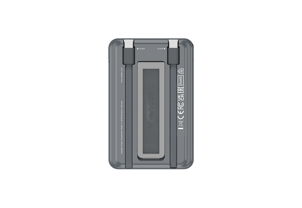 Verbatim prezentuje najnowsze uzupełnienie swojej mobilnej linii akcesoriów – Charge 'n' Go 2C Power Bank 5000 mAh – magnetyczny powerbank z wbudowaną podstawką i dwoma zintegrowanymi przewodami USB-C. To kompaktowe źródło energii zaprojektowane z myślą o użytkownikach, którzy potrzebują ładować wiele urządzeń jednocześnie – bez dodatkowych kabli i z maksymalną wygodą. Poprzez wbudowane magnesy przylega bezpośrednio do urządzenia i bezprzewodowo uzupełnia jego energię.