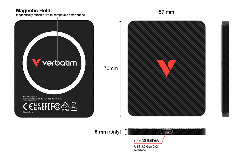 Firma Verbatim rozszerza linię swoich magnetycznych dysków o nowy model – SnapBack Ultra Slim SSD, urządzenie, które łączy wyjątkowo smukłą konstrukcję z wydajnością klasy premium. Przy grubości zaledwie 5 milimetrów to jeden z najbardziej kompaktowych dysków SSD na rynku, a jednocześnie prawdziwa potęga technologiczna – z prędkościami odczytu do 2050 MB/s i zapisu do 1900 MB/s, kompatybilnością z Apple ProRes 4K i interfejsem USB 3.2 Gen 2x2.