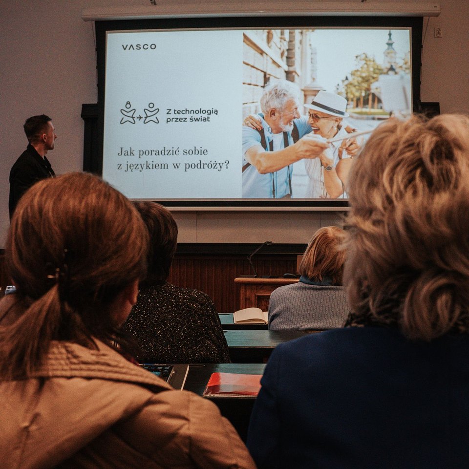 Zakończyła się druga edycja Akademii Seniora Vasco „Z technologią przez świat" - bezpłatnego cyklu warsztatów dla osób 60+, realizowanego w Warszawie we współpracy z Uniwersytetem Trzeciego Wieku SGH. W projekcie wzięło udział niemal 40 osób - słuchaczy UTW SGH, którzy wzięli udział w 13 warsztatowych spotkaniach poświęconych samodzielnemu planowaniu podróży w erze cyfrowej. Organizatorem warsztatów była firma Vasco, europejski lider segmentu elektronicznych tłumaczy i rozwiązań tłumaczeniowych.