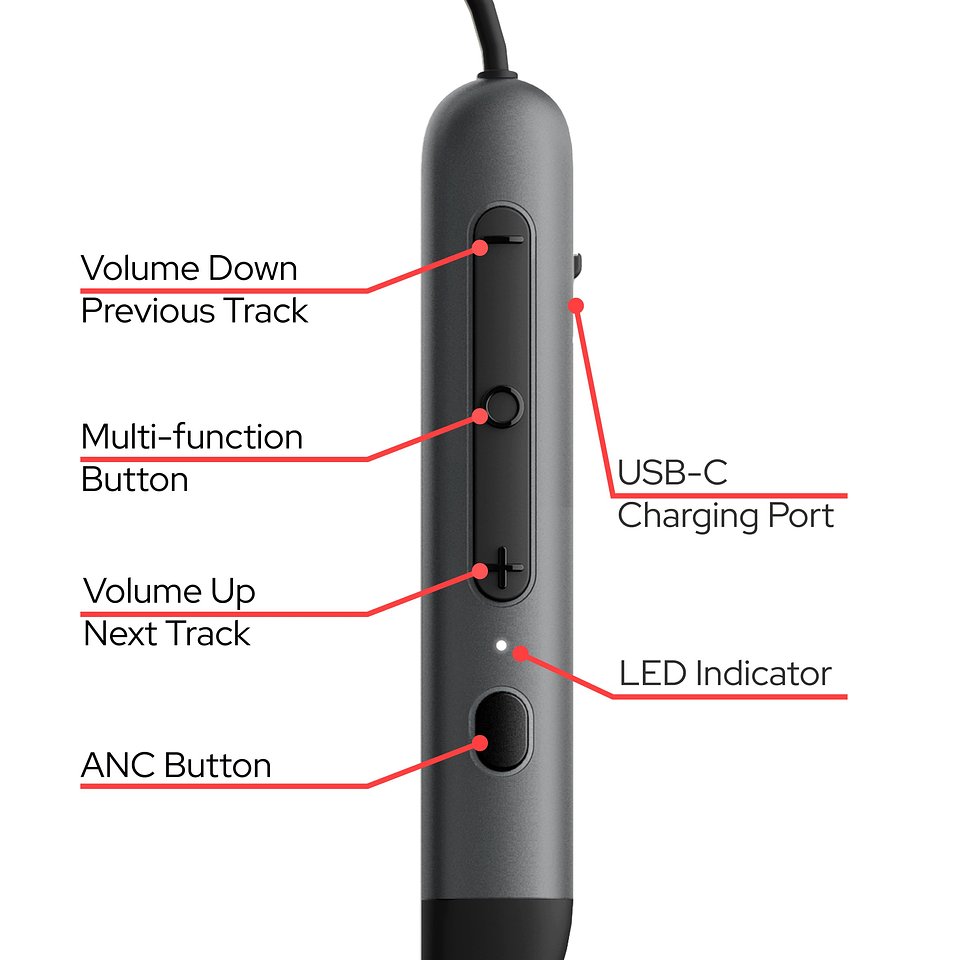 TruSound ANC Neckband wyposażono w 13-milimetrowe przetworniki dynamiczne, które zapewniają większą objętość dźwięku i lepszą reprodukcję niskich częstotliwości niż typowe konstrukcje TWS. Zakres przenoszenia 20 Hz – 20 kHz obejmuje pełne pasmo słyszalne, a impedancja 32 Ω i czułość 124 dB stawiają słuchawki solidnie na tle konkurencji w tej klasie cenowej. Mikrofon o czułości -38 dB skutecznie wspiera komunikację głosową.