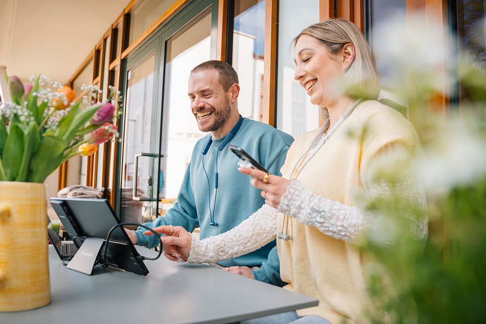 Wbudowany akumulator Li-Polymer o pojemności 300 mAh zapewnia do 28 godzin pracy, w zależności od scenariusza użytkowania. Ładowanie odbywa się przez złącze USB-C (5V / 600 mA), zgodnie z aktualnymi standardami zasilania urządzeń mobilnych. Funkcja magnetycznego auto on/off działa prosto: złożone razem słuchawki wyłączają się automatycznie, a rozłączone – włączają. Eliminuje to konieczność ręcznego zarządzania zasilaniem i wydłuża rzeczywisty czas pracy baterii.